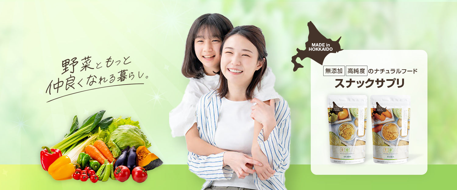 スナックサプリは、無添加・調味料不使用にこだわった、 安心して子どもに食べさせられる新感覚の野菜スナック。素材そのものの味を活かしているから、野菜が苦手な子どもたちにも「おいしい!」と好評です。 ヨーグルトに砕いてトッピングしたり、 牛乳や豆乳でふやかしてスムージーに加えたりと、使い方は自由自在。 バナナやほうれん草、小松菜などと合わせれば、自然な甘みと一緒にしっかり栄養もとれます。 さらに、カレーに加えれば、まるで一晩寝かせたようなコクが出て、 手軽なのに本格的な味わいに仕上がるのも嬉しいポイント。 毎日の食卓で、手軽に栄養をプラスできる心強い味方です。